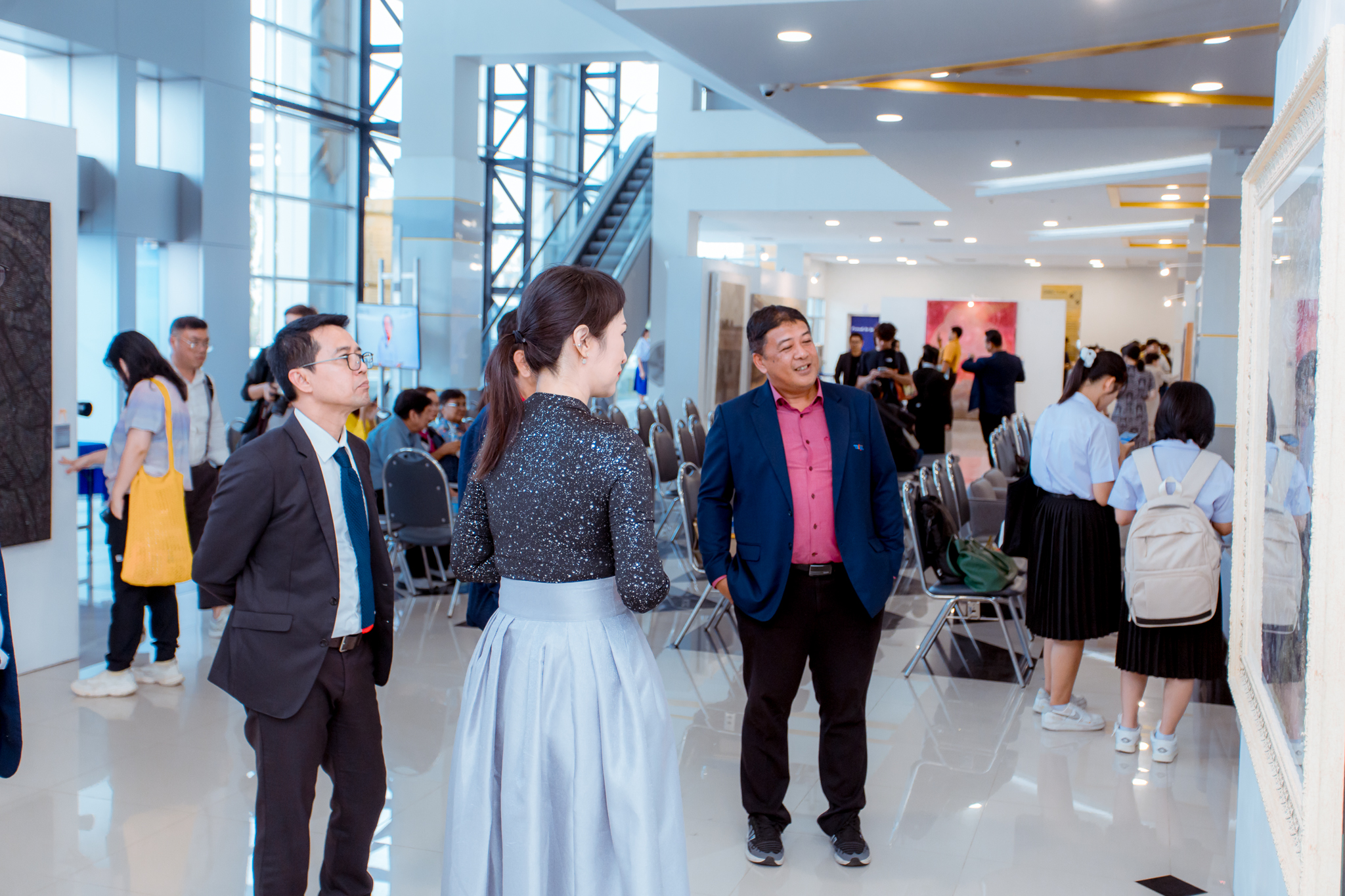 รองศาสตราจารย์ ดร.ณฐพงศ์ จิตรนิรัตน์ อธิการบดีมหาวิทยาลัยทักษิณ เป็นประธานในพิธีเปิดนิทรรศการ “การแสดงศิลปกรรมแห่งชาติ ครั้งที่ 69 : The 69th National Exhibition of Art” โดยมีคณะผู้บริหาร คณาจารย์ นำโดยผู้ช่วยศาสตราจารย์ ดร.ระวีวัฒน์ ไทยเจริญ คณบดีคณะศิลปกรรมศาสตร์ พร้อมด้วยรองศาสตราจารย์วิรัญญา จิราธิกิตติ์ ผู้อำนวยการหอศิลป์ มหาวิทยาลัยศิลปากร กล่าวรายงานการจัดนิทรรศการฯ ภายในงานมีบุคลากรทั้งภายในและภายนอกสถาบัน นิสิต ศิลปิน และแขกผู้มีเกียรติเข้าร่วมงานอย่างคับคั่ง